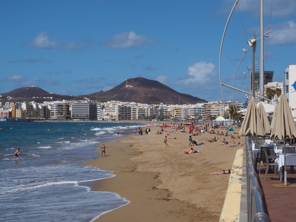 Playa de las Canteras. Kaupungin kuuluisin hiekkaranta. Rantabulevardi kulkee koko kolmen kilometrin matkan rannan vieressä. LAS PALMAS