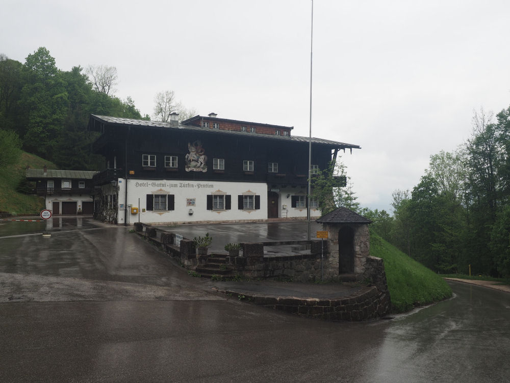 Hotel zum Türken. Kymmenen vuotta sitten majoituimme entisessä SS-miesten majapaikassa, mutta nyt hotelli on ollut valitettavasti jo vuosia suljettuna. Vartiokoppi muistuttaa vielä maailmansodasta.