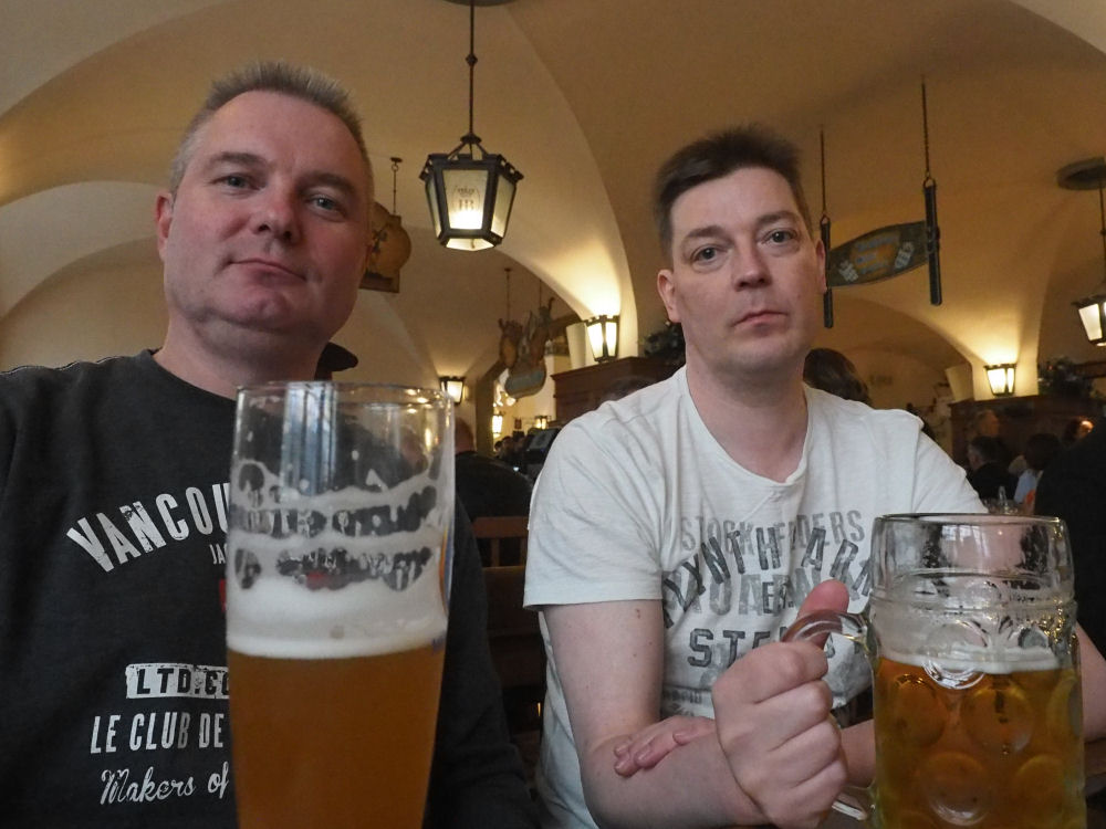 Hofbräuhaus am Platzl. Anden 50-vuotisjuhlat pidettiin kahteen mieheen. (Tosin, muu pöytäseurue kyllä kilisteli tuoppeja meidän kanssa moneen kertaan). Andella näyttääkin olevan tässä ilo ylimmillään...