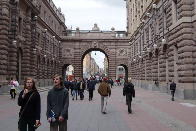 Riksgatan kulkee ikään kuin Ruotsin valtiopäivätalon läpi.