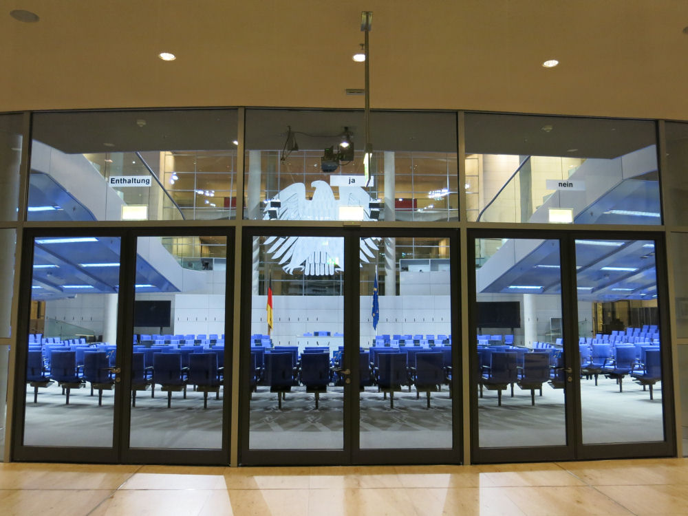 Valtiopäivätalon istuntosali. Salissa kokoontuu Saksan parlamentti eli liittopäivät.