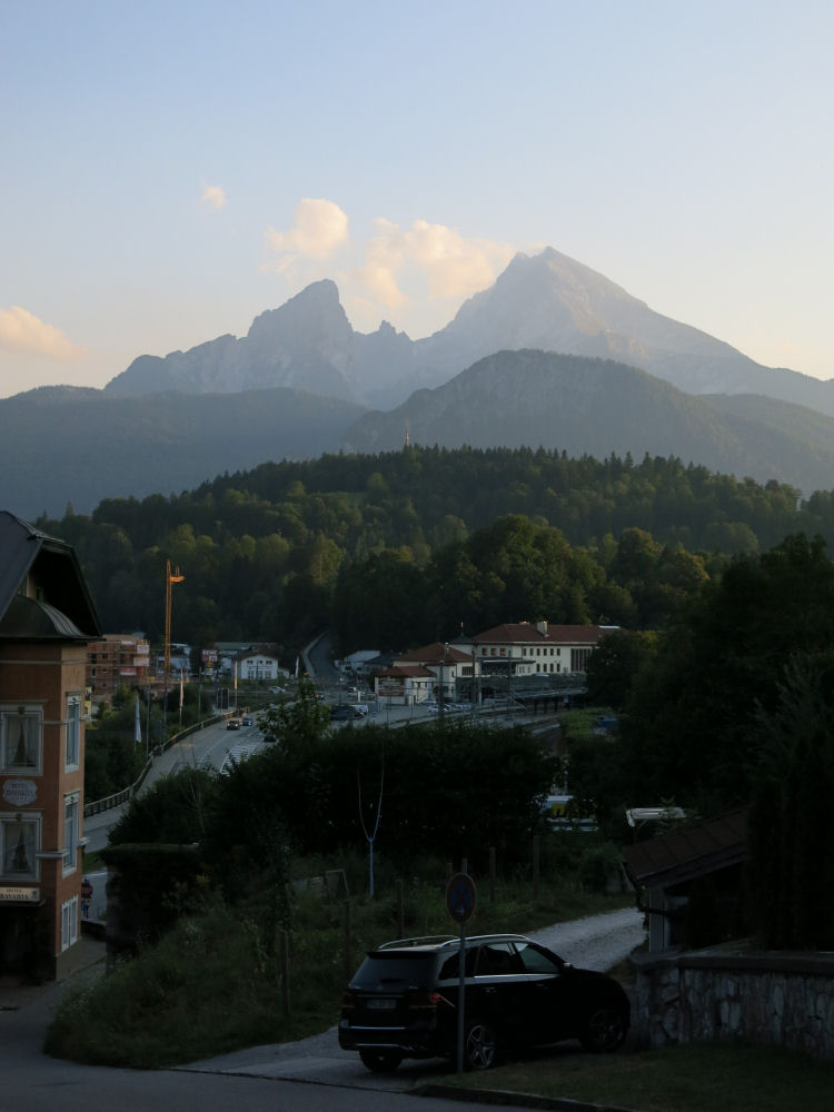 2713 metrinen Watzmann (Saksan kolmanneksi korkein vuori) näkyi mm. Hotel Bavarian (vasemmassa reunassa) aamiaispöydästä hienosti! BERCHTESGADEN