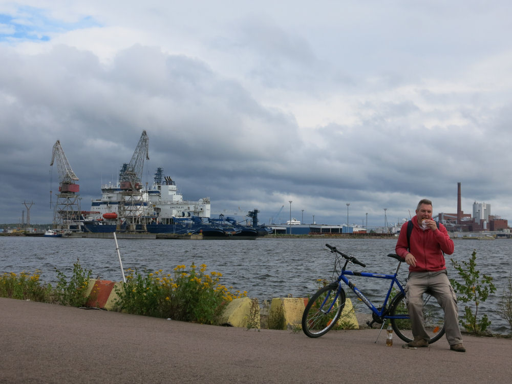 Aamiainen satamassa ennen pyöräilyä.