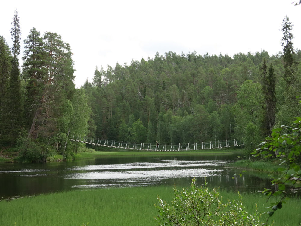 Harrisuvannon riippusilta. Reitillä on kolme riippusiltaa.