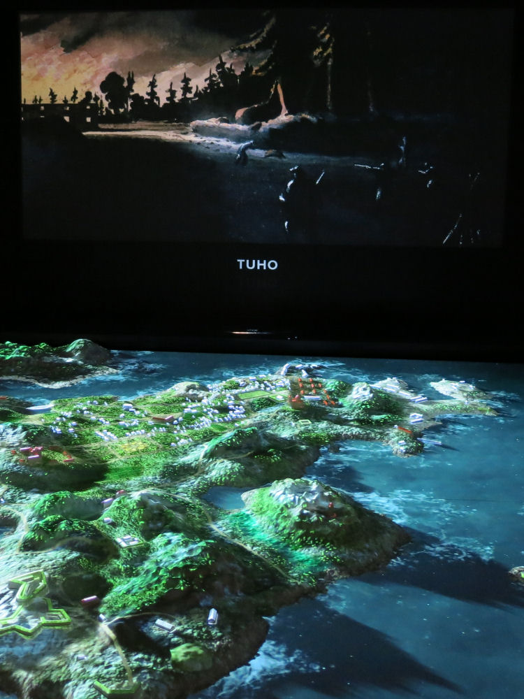 Merikeskus Vellamon kolmiulotteinen kuvaus Kotkan edustalla Ruotsinsalmessa käydystä taistelusta. KOTKA