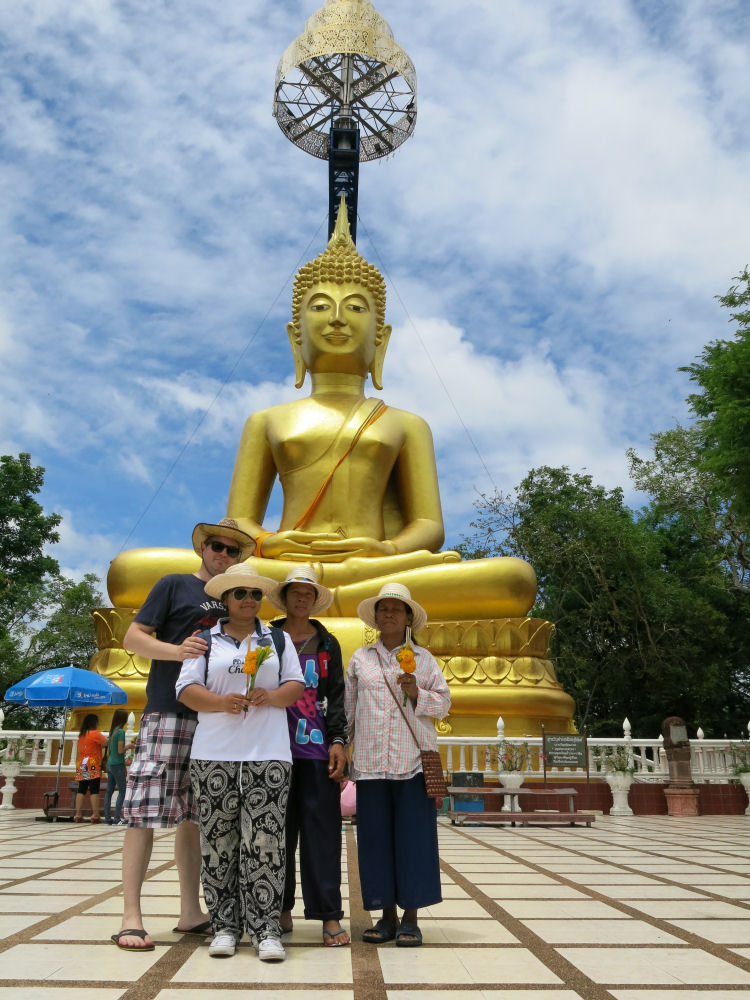 Khao Kradong Forest Park. Sammuneen tulivuoren huipulla on suuri buddha. Minä, May, Mayn serkun vaimo Na ja Mayn äiti Sam. BURIRAM