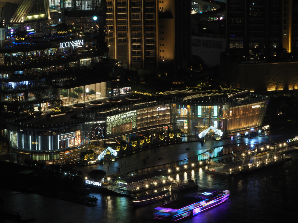 Sviittimme (kaikkia hotellin huoneita kutsuttiin sviiteiksi) parvekkeelta oli hyvät näkymät takaisin ICONSIAMille. BANGKOK