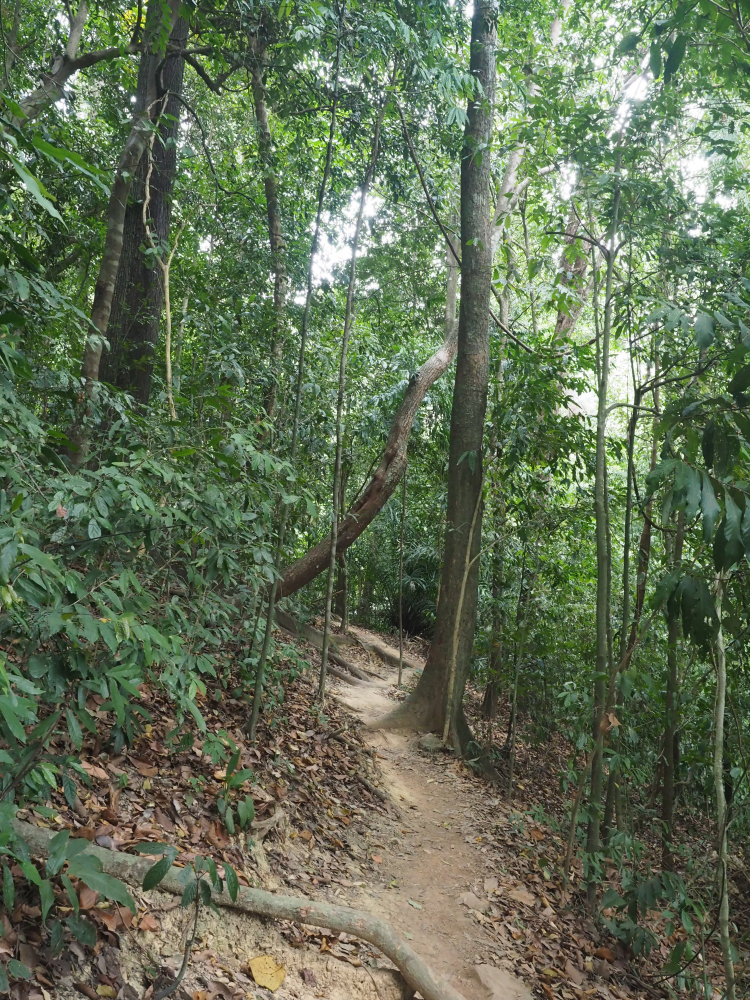 Mu Ko Lanta National Park. Parin kilometrin mittainen luontopolku kiemurteli sademetsässä ylös-alas rinteitä. KO LANTA