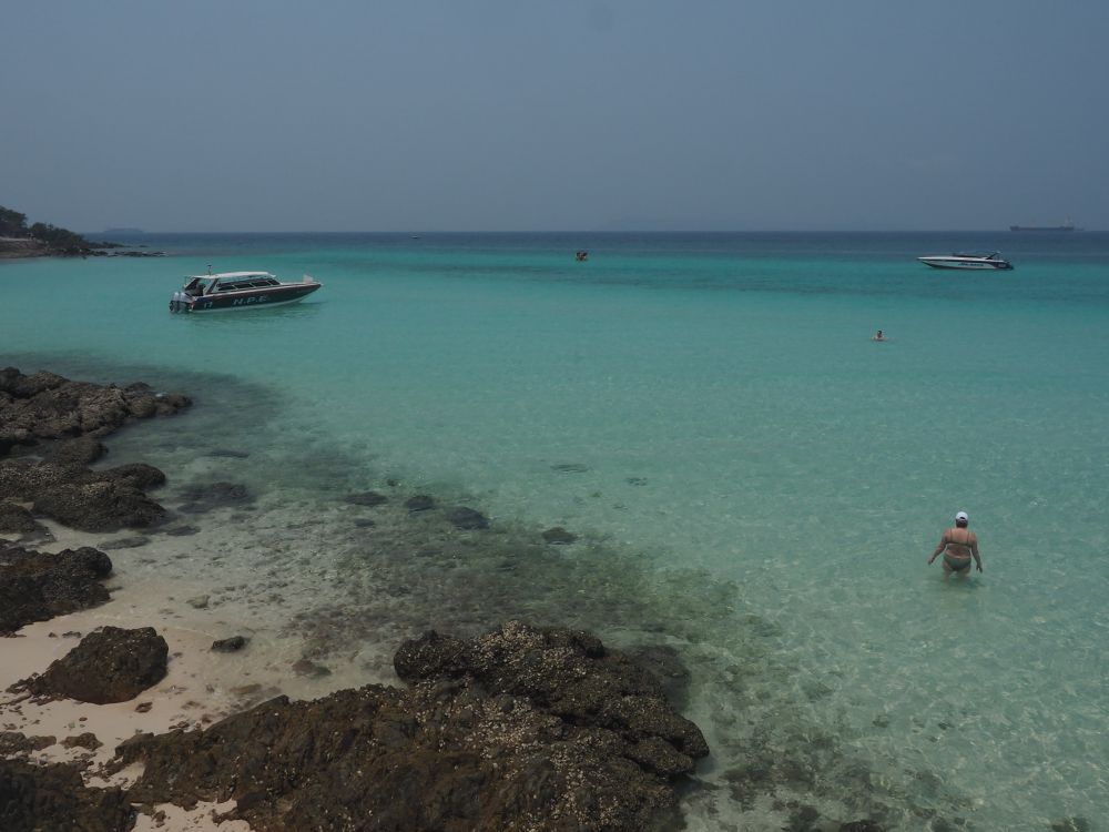 Päivämatka lähisaarelle. Erittäin puhtaat vedet. Kuin yö ja päivä verrattuna Pattayan likaisiin vesiin. KO LAN