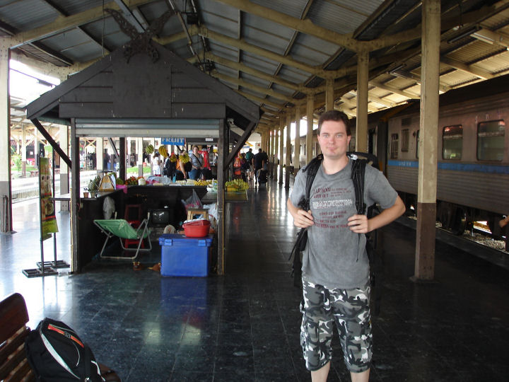 Chiang Main rautatieasemalla, juuri Bangkokin yƶjunasta nousseena.