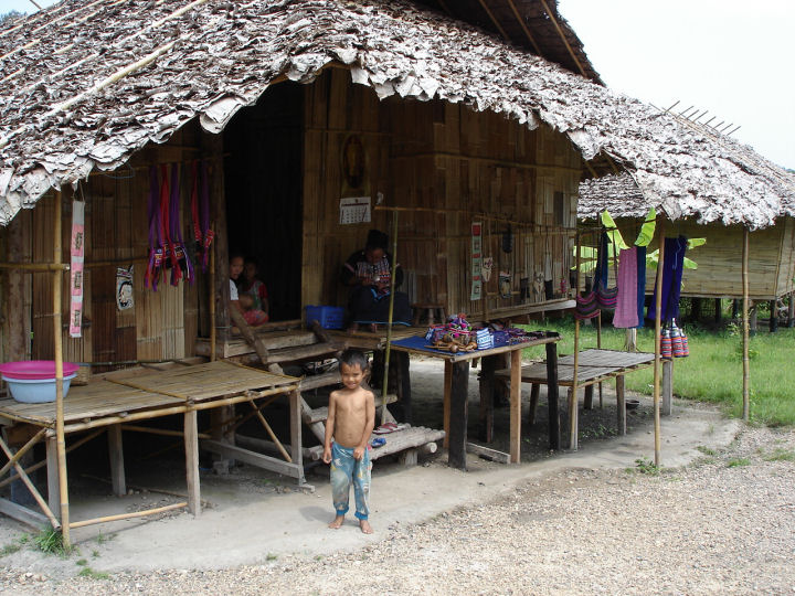 Tong Luangin kylä. Lahu-heimon mökki.