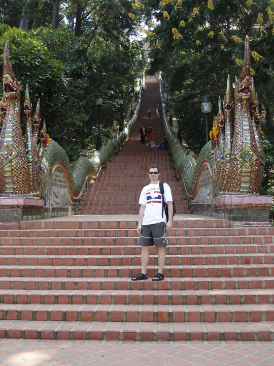Edessä 300-askelmainen Naga-portaikko ylös temppelille.