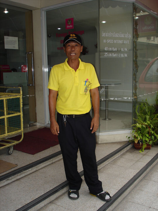 Vapaaehtoinen opas. Kysyin mieheltä tietä postiin. Lupasi lähteä näyttämään. Kahden temppelin, tunnin kävelyn ja parin muun kohteen jälkeen sekin löytyi.