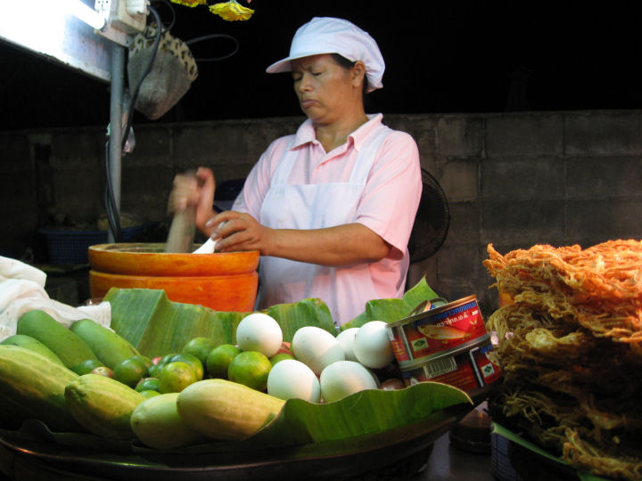 Tässä valmistuu ylitulinen papaijasalaatti, som tam.