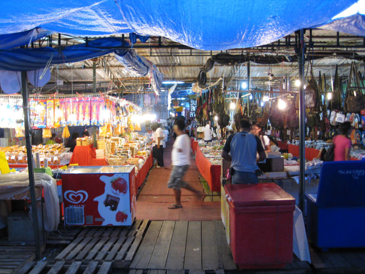 Jokailtainen tori Buriramin pääkadun, Jira roadin, varrella.