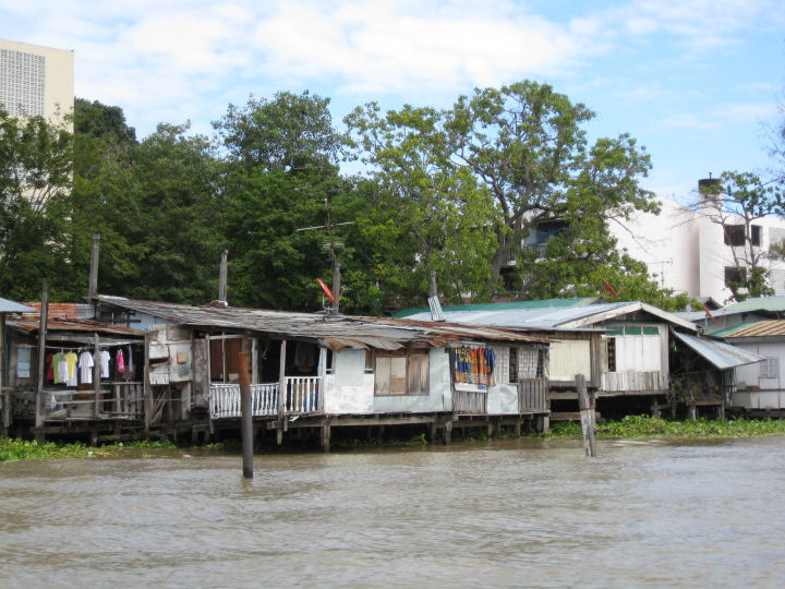 Köyhemmän kansanosan asutusta Chao Phraya-joen varrella.